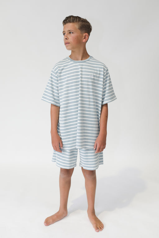 A relaxed drop shoulder t-shirt Featuring a hand painted racing car (inspired by the Porsche) by artist, Guy Brock. 100% GOTS certified organic cotton unisex kids tee.